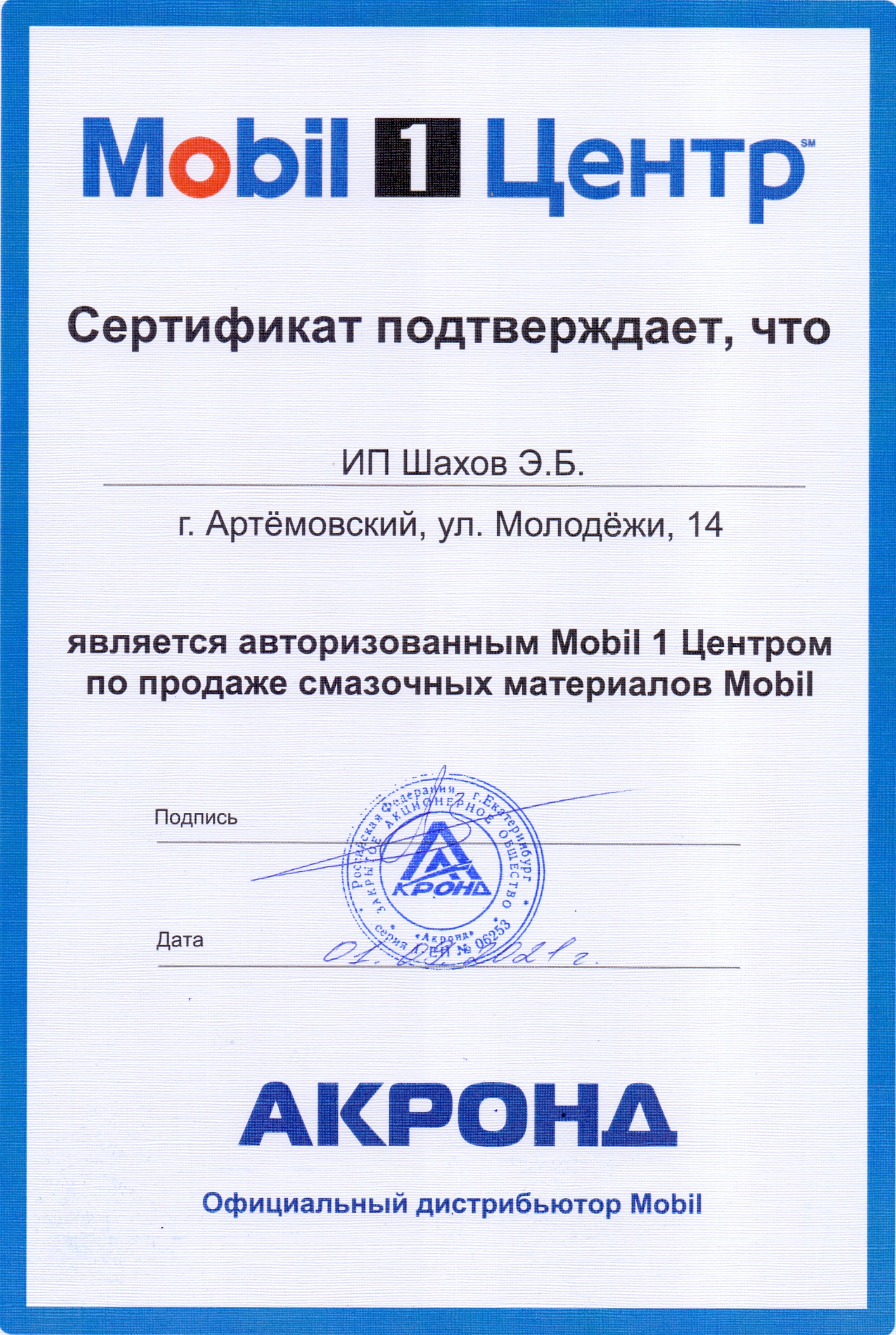 Наш Mobil 1 Центр сертифицирован по системе добровольной сертификации на автомобильном транспорте.